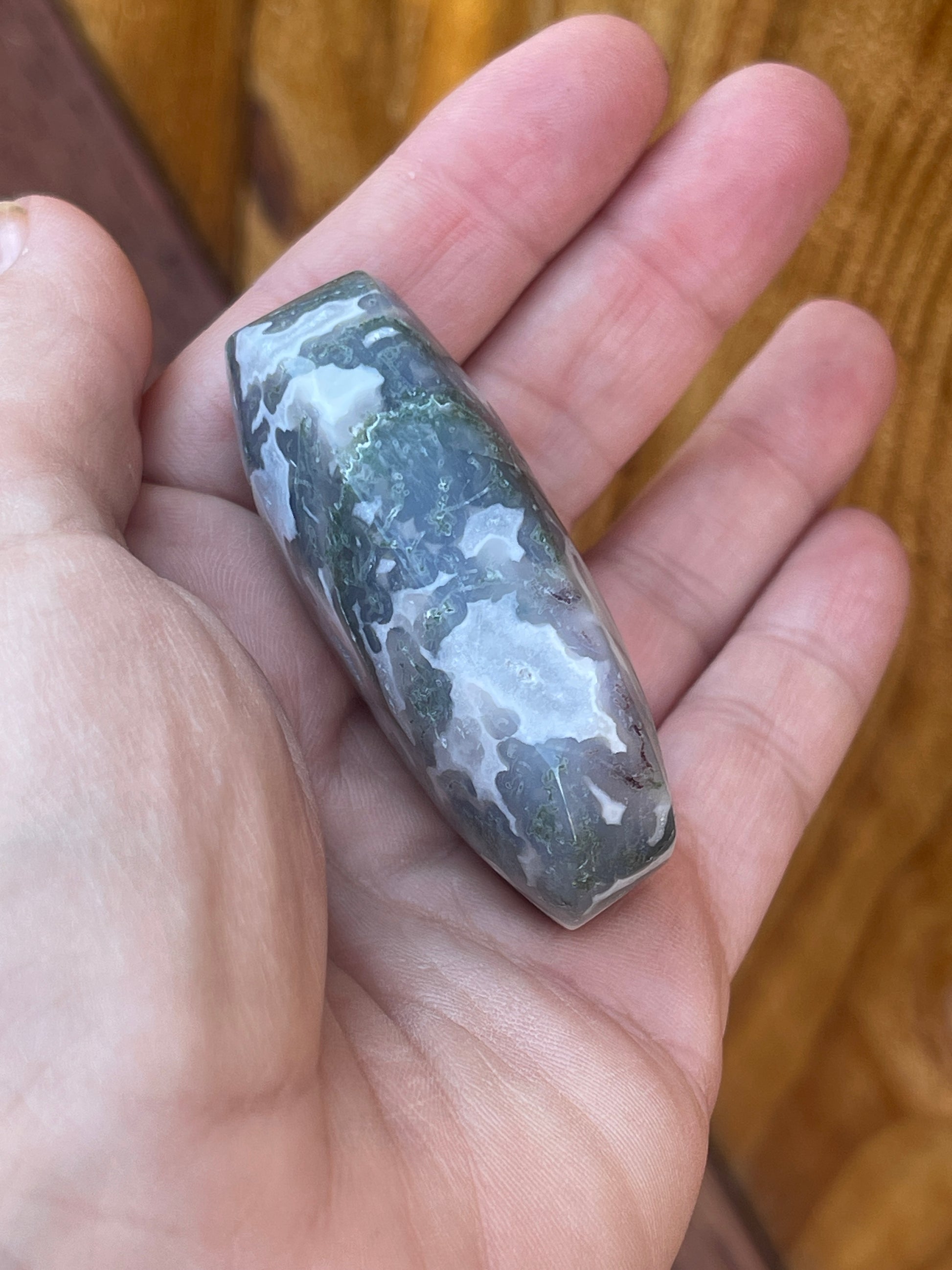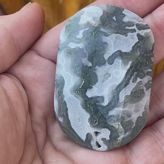 Discover the calming energy of the Moss Agate Palm Stone, a natural gem known for its soothing green patterns that evoke growth and renewal. Perfectly shaped to fit comfortably in your hand, this stone encourages balance and emotional healing, helping you release stress and invite tranquility. Keep it close during meditation or daily moments to reconnect with nature’s grounding essence and enhance your well-being. Embrace serenity and positive energy with this beautifully crafted Moss Agate Palm Stone.