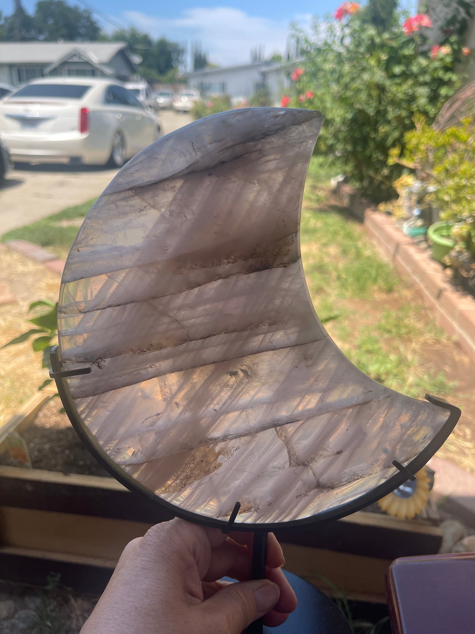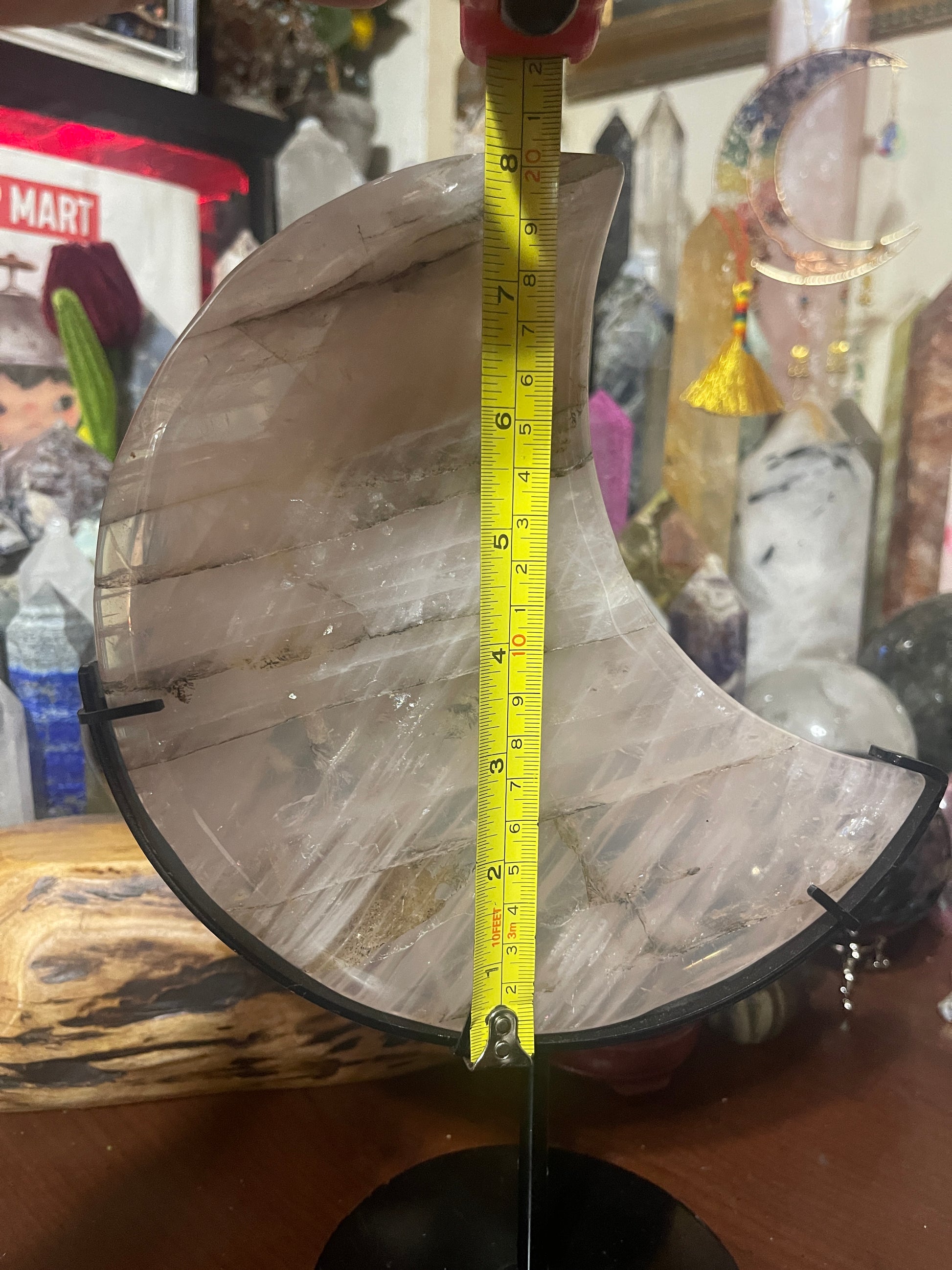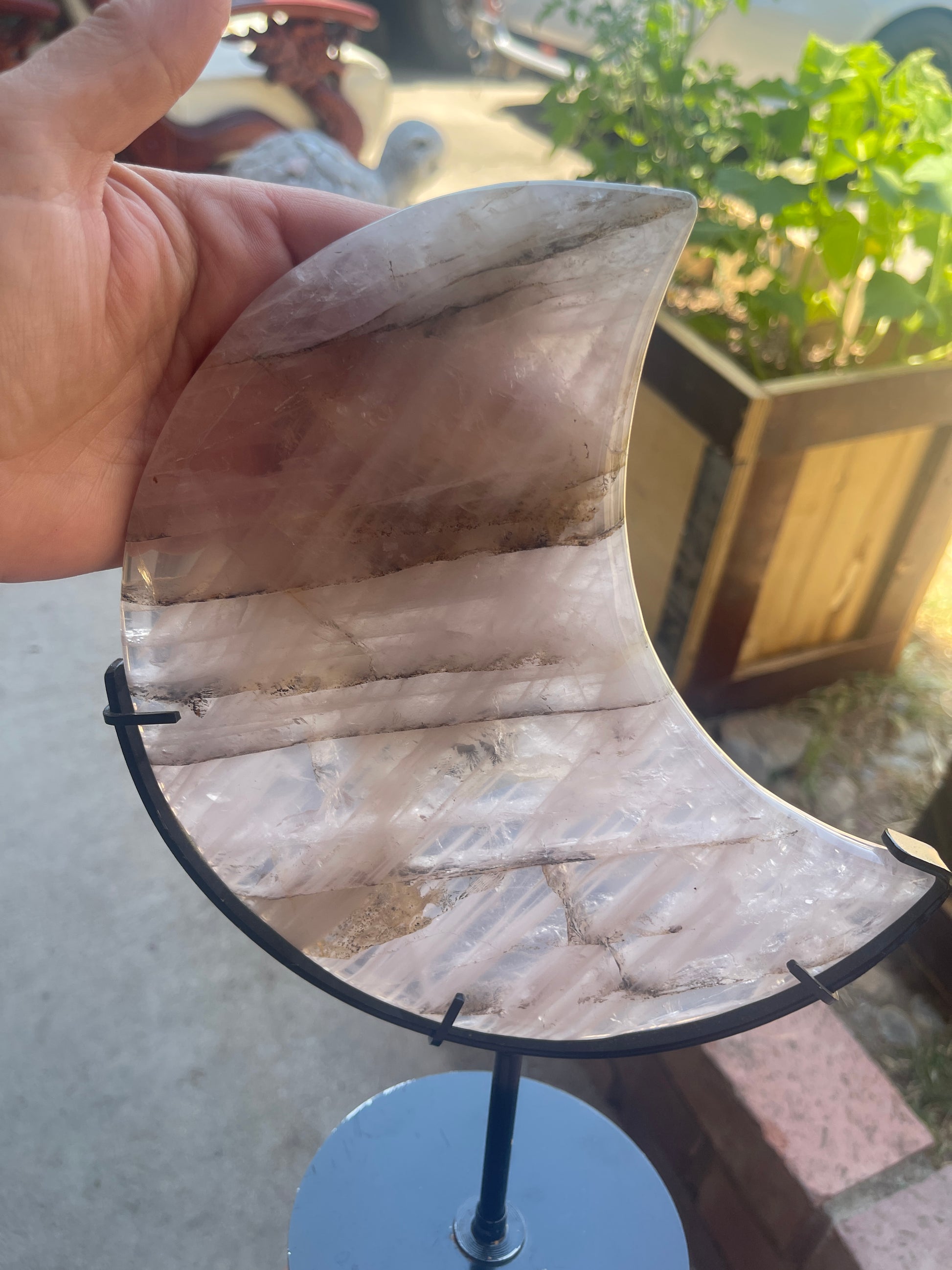 Rose Quartz Crystal Moon is a beautifully crafted piece that combines the gentle energy of rose quartz with the serene symbolism of the moon. Known for its association with love, compassion, and emotional healing, this crystal moon serves as a powerful tool for enhancing self-love and fostering harmonious relationships. Its smooth, polished surface makes it ideal for meditation, energy work, or as a decorative element that brings calming vibrations to any space. Perfect for those seeking to deepen their spiritual practice or create a peaceful environment.