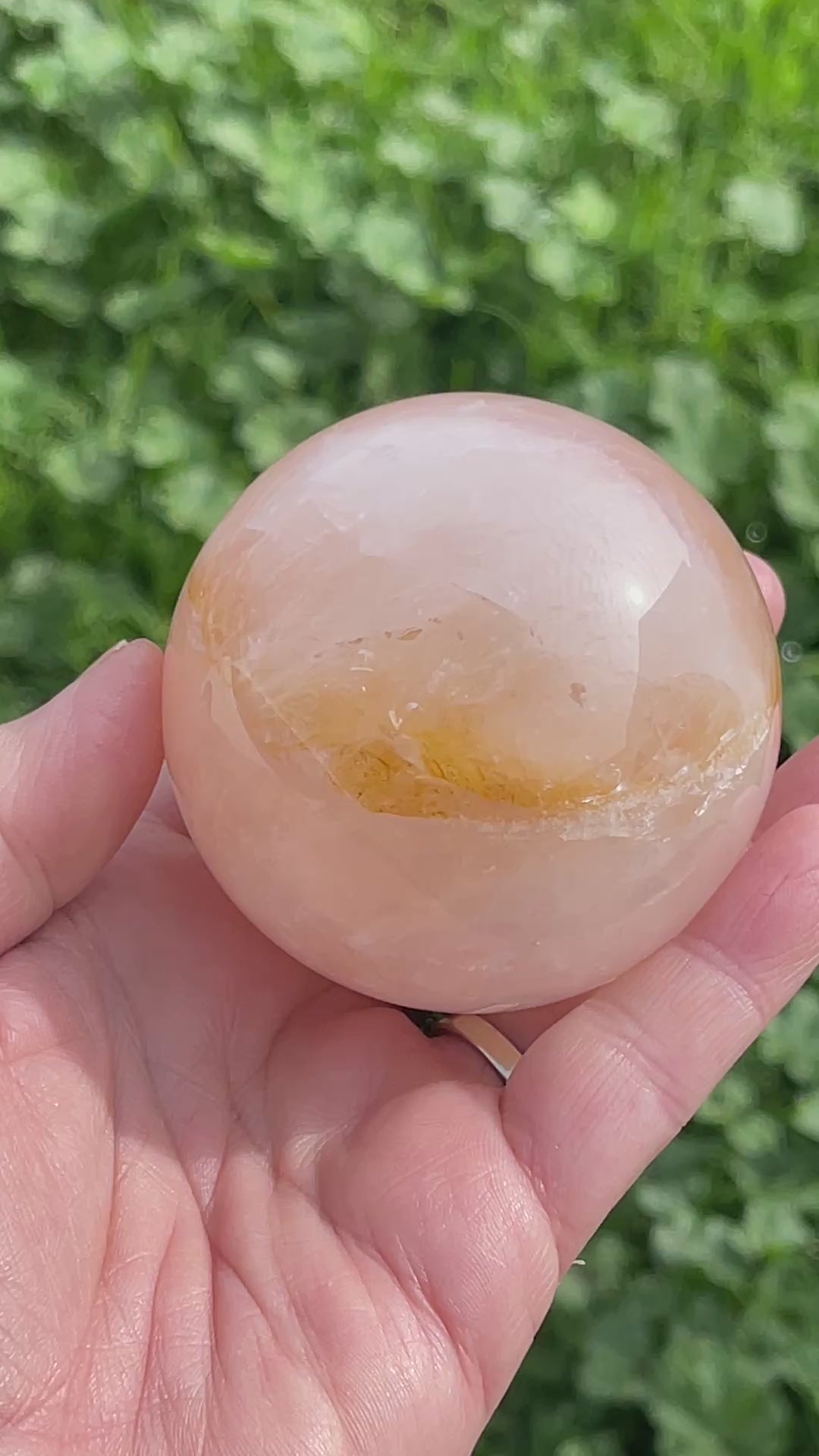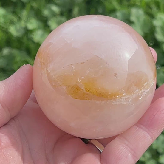 Discover the healing properties of our Rose Quartz Sphere. This crystal contains golden healer properties known to promote physical and emotional healing. Let the calming energy of rose quartz bring balance and harmony to your life. Perfect for those seeking a natural and holistic approach to wellness. This rose quartz sphere weighs 421gm.
